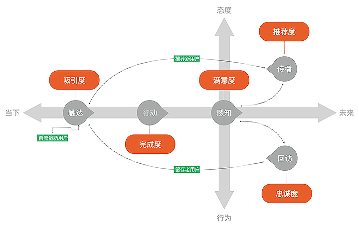 以上這3點(diǎn)是我們設(shè)計人員在工作中需要看數(shù)據(jù)的原因。但在設(shè)計工作中,數(shù)據(jù)使用主要關(guān)注2個方面,一個是看什么數(shù)據(jù),另一個是如何使用數(shù)據(jù)。設(shè)計師看什么數(shù)據(jù),我們根據(jù)用戶體驗設(shè)計目標(biāo)與產(chǎn)品生命周期,形成了用戶體驗的“5度”模型,即吸引度、完成度、滿意度、忠誠度、推薦度。不同產(chǎn)品的5度具體指標(biāo)要根據(jù)產(chǎn)品實(shí)際情況來定義,今天我就不展開來講了,詳細(xì)可以查看阿里UED博客或《U一點(diǎn)料》