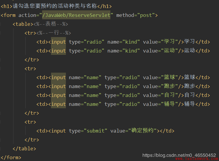預(yù)約功能的實(shí)現(xiàn)更是與注冊(cè)功能的實(shí)現(xiàn)基本一致。所不同的應(yīng)該是jsp頁(yè)面對(duì)單選框輸入的設(shè)置。