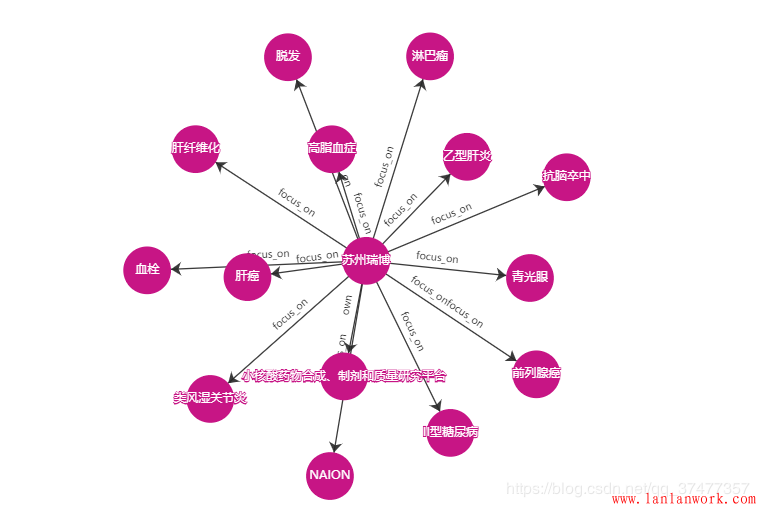 找了做前端圖表展示的開(kāi)源庫(kù),D3.js和Echarts都能做,我拿Echarts實(shí)現(xiàn)了一下功能,先看一下在現(xiàn)在項(xiàng)目里一個(gè)基于知識(shí)圖譜查詢的實(shí)際效果: