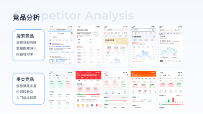 設計優(yōu)化思路:結合競品優(yōu)劣勢可得出,需要在提高信息豐富度的同時,考慮小白用戶的入門成本,用更可視化及簡潔的設計語言輔助用戶快速獲取有效需求信息。