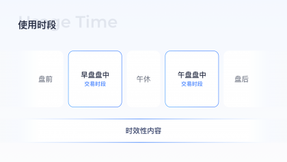 股票交易時段有固定的交易周期,包括盤前/早盤盤中/午休/午盤盤中/盤后幾個固定時段,不同時段用戶需求不同,了解不同時段的用戶需求可以更好的滿足用戶,比如開盤過程中用戶想看到更實時更專業(yè)的行情信息、實時的資訊動態(tài),而在盤前/盤后用戶更想看到的是今日大盤的走勢預測/收盤后的大盤總結,除了固定周期的用戶需求,突發(fā)的新聞資訊類時效性內容對用戶做決策分析也很重要。