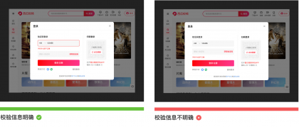 錯(cuò)誤校驗(yàn)提示一般存在于錯(cuò)誤率較高情況下出現(xiàn),如:在登錄注冊(cè)時(shí),要求用戶填寫手機(jī)號(hào),如果用戶輸入的手機(jī)號(hào)碼不符合特定的輸入格式,那么這時(shí)候需要明確標(biāo)記錯(cuò)誤原因,準(zhǔn)確的幫助用戶找到問題并解決,避免錯(cuò)誤提示描述模糊不清誤導(dǎo)用戶。錯(cuò)誤提示一般會(huì)采用“雙重視覺強(qiáng)調(diào)”來顯示錯(cuò)誤,除了輸入框突出顯示外,同時(shí)需要在輸入框下方加入紅色指導(dǎo)文字。如下圖所示為西瓜視頻登錄注冊(cè)場(chǎng)景下的截圖: