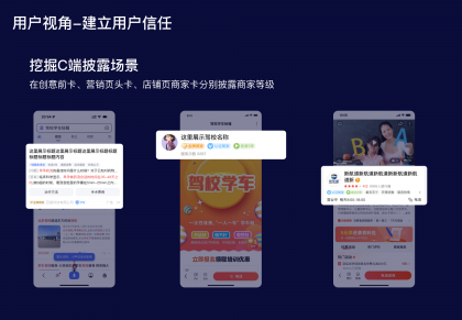 增加C端披露:通過挖掘C端披露場景,幫助用戶提高優(yōu)質(zhì)商家獲取效率