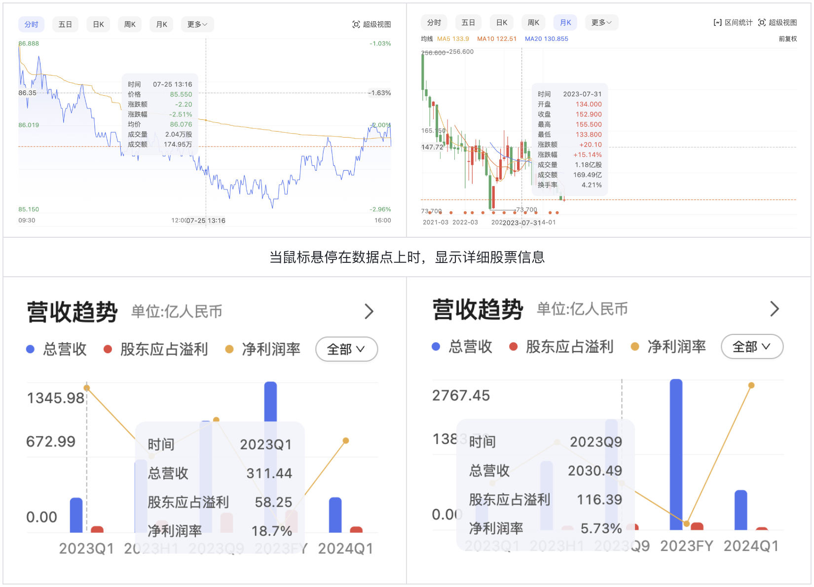為用戶提供工具提示(hover tooltips)是一種行之有效的設(shè)計策略,在股票界面中尤為重要。當用戶將鼠標懸停在股票相關(guān)的數(shù)據(jù)點上時,隨即顯示出詳細的信息,比如具體的股價數(shù)值、漲跌百分比或者相關(guān)的專業(yè)注釋。