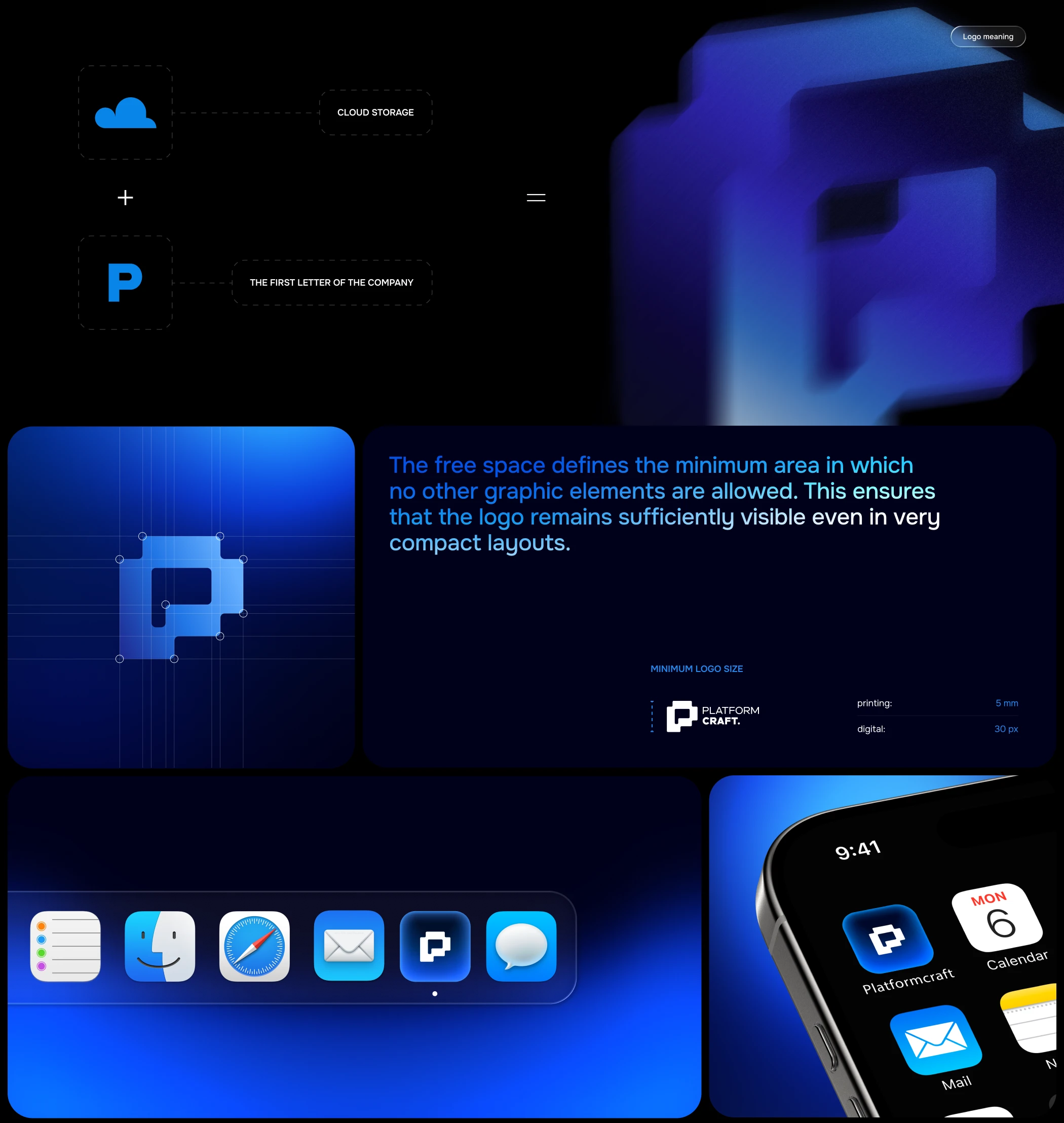 從設(shè)計(jì)語言來看,Platformcraft 的標(biāo)志設(shè)計(jì)強(qiáng)調(diào)結(jié)構(gòu)感與數(shù)字秩序: