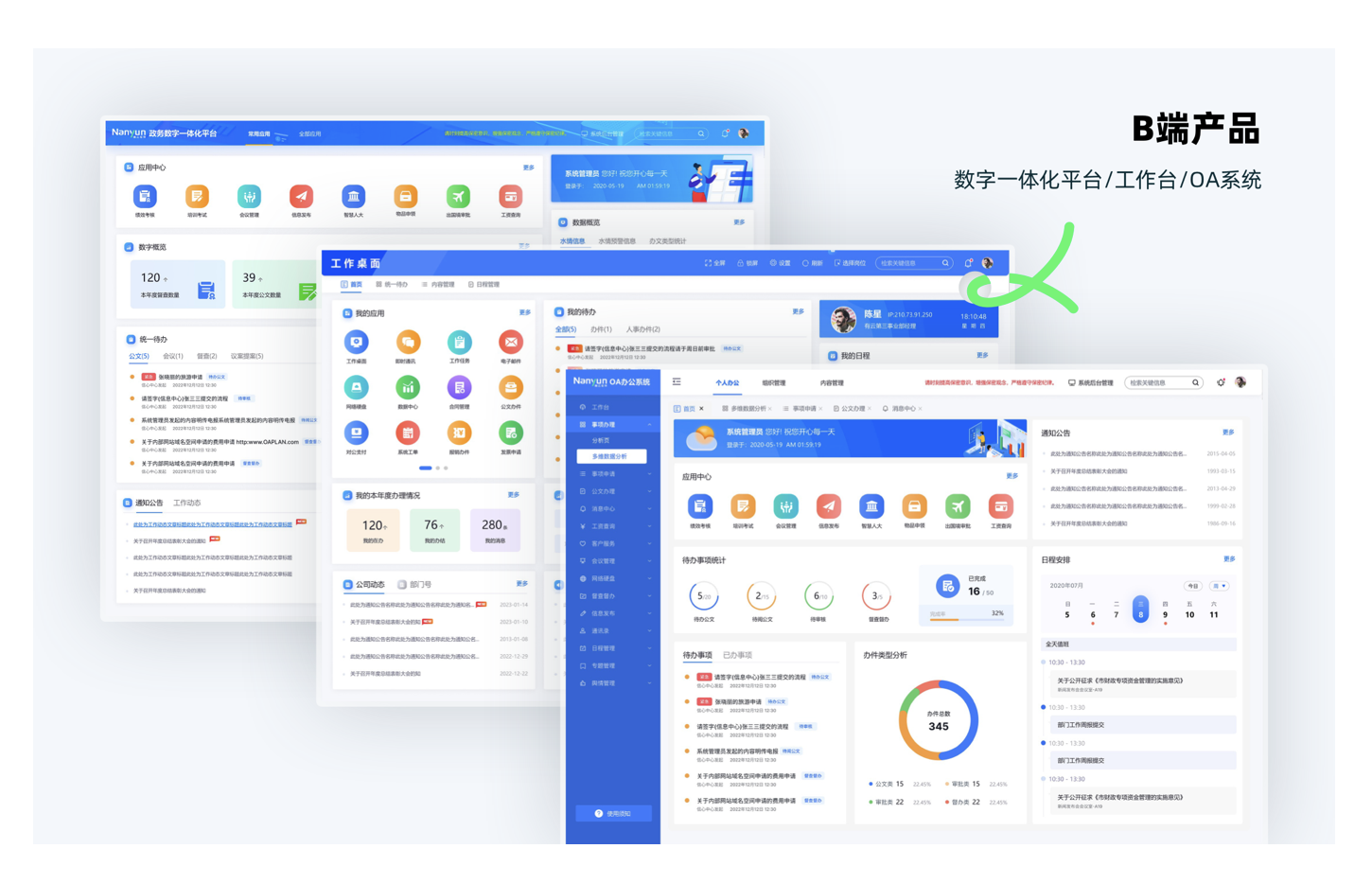 - B 端 UI 設計:全稱 “To Business”,服務于企業(yè)或組織用戶,核心是滿足商業(yè)流程需求。比如 OA 辦公系統(tǒng)、財務軟件、數據監(jiān)管平臺等,設計目標是幫企業(yè)優(yōu)化流程、降低成本、提升生產力。