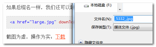 例如,我們希望點(diǎn)擊“下載”鏈接下載圖片而不是瀏覽,直接增加一個(gè)download屬性就可以: