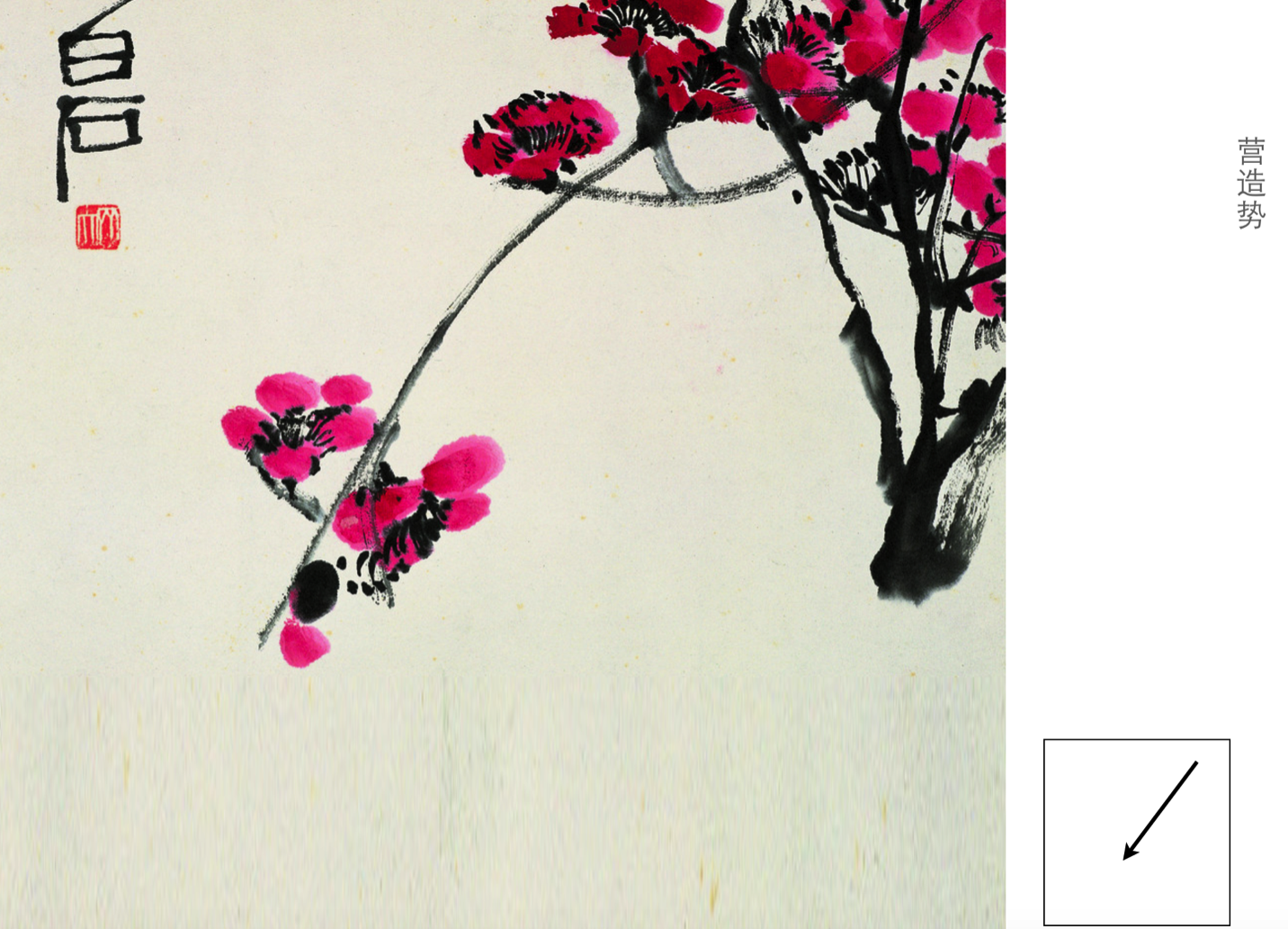 當(dāng)文字小而成行,視覺(jué)上就形成了“線”,而圖標(biāo)為“點(diǎn)”,人們的閱讀習(xí)慣使成行的文字具有向右擴(kuò)張的趨勢(shì),這種趨勢(shì)同國(guó)畫(huà)的“勢(shì)”一樣的道理。