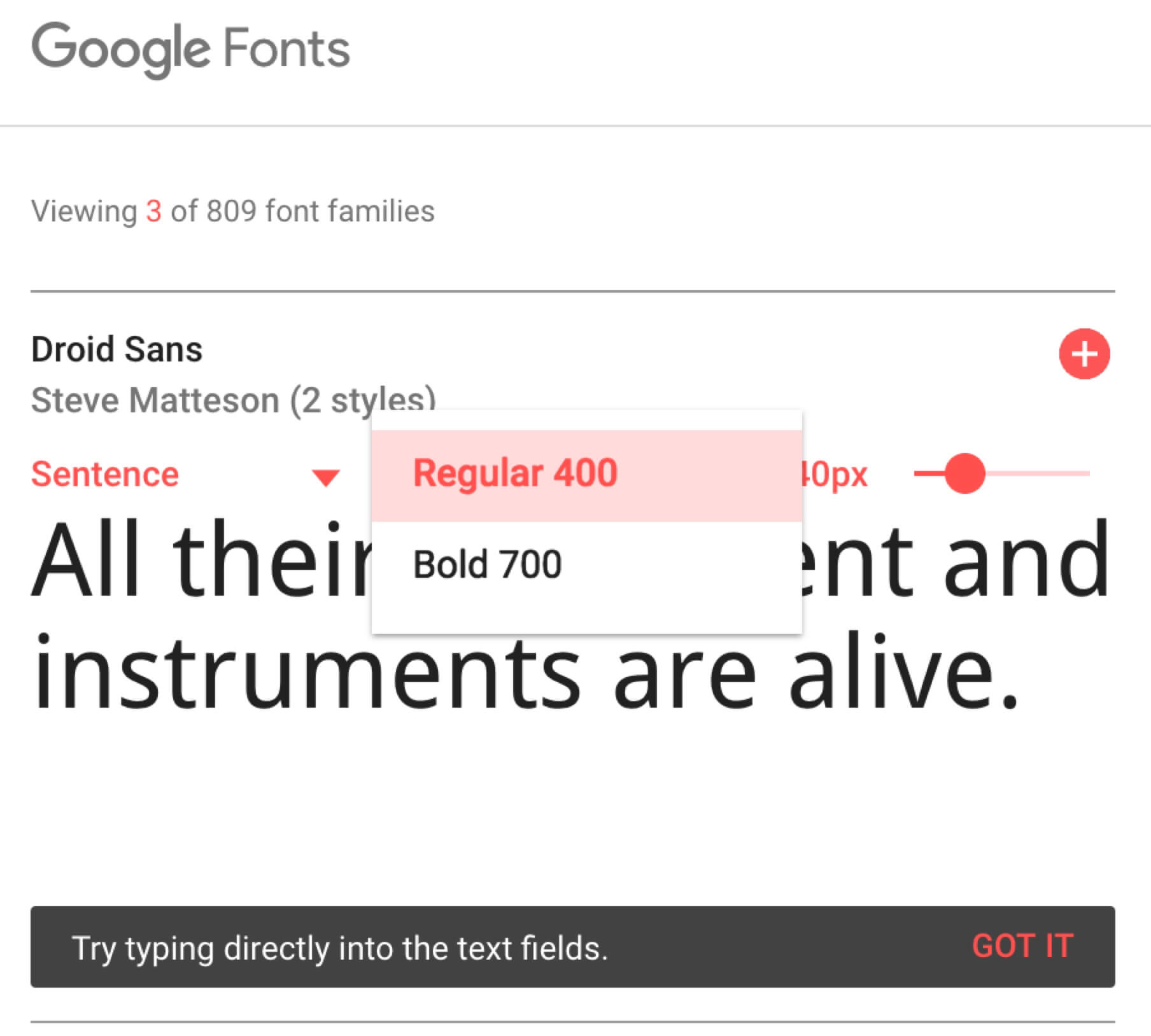 根據(jù)Google Fonts API – Droid Sans提供的Droid Sans字體,我們可以知道該字體擁有兩種字重。