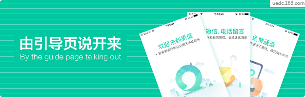 以易信為例,采用文字與水彩插圖結(jié)合的方式,文字分為2個層次,大標題與小標題,大標題是對主功能的概括,小文字是對其功能模塊的詳細描述或進一步補充說明。