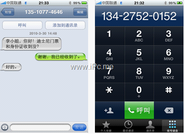 內(nèi)置的短信發(fā)送實(shí)在是太經(jīng)典了,寫信人和收信人左右區(qū)分,信息內(nèi)容通過(guò)時(shí)間順序排列下來(lái),整個(gè)信息來(lái)回歷史一目了然。呼叫程序同樣出色,重新設(shè)計(jì)的數(shù)字鍵盤弱化了字母排列,突出數(shù)字,由此換來(lái)寬大容易點(diǎn)擊的屏幕空間。