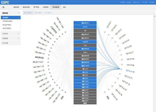 優(yōu)化圖形時(shí),我們對很多細(xì)節(jié)進(jìn)行了調(diào)整: – 考慮太密或太疏時(shí)用戶的感受,只展示了TOP N。 – 弧度、配色的優(yōu)化,與我們UI界面風(fēng)格相一致。 – IP名稱超長時(shí)省略處理。 – 微觀視角中,源和目的分別以藍(lán)色和紫色區(qū)分,同時(shí)在線上增加箭頭,箭頭向內(nèi)為源,向外是目的,方便用戶理解。 – 交互上,通過單擊鉆取到單個(gè)端口和IP的信息;鼠標(biāo)滑過時(shí)相關(guān)信息高亮展示,這樣既能讓畫面更加炫酷,又能讓人方便地識別。
