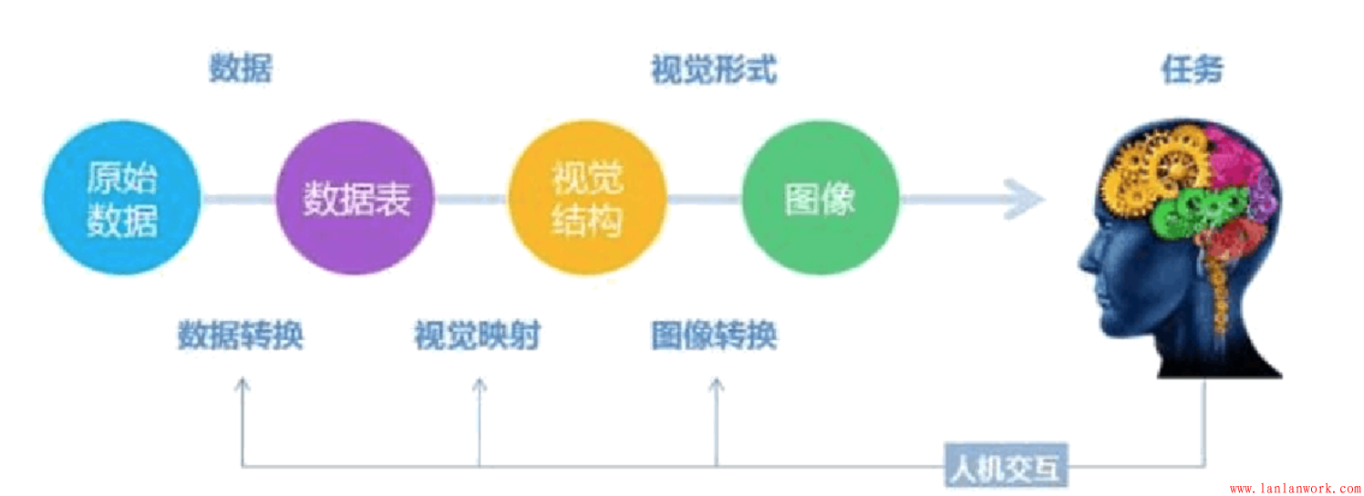 有了故事,還需要找到數(shù)據(jù),并且具有對數(shù)據(jù)進(jìn)行處理的能力,圖1是一個(gè)可視化參考模型,它反映的是一系列的數(shù)據(jù)的轉(zhuǎn)換過程: