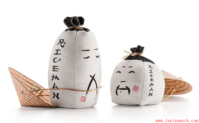 包裝外形以亞洲稻農(nóng)戴蓑帽的傳統(tǒng)形象為原型,圓錐形帽子紙盒蓋子內(nèi)側(cè)則巧妙與標(biāo)記測(cè)量米量的米杯結(jié)合,實(shí)用又環(huán)保。兩種不同尺寸的袋子分別裝盛不同的大米類(lèi)型:短粒米為小袋子,長(zhǎng)粒米為高袋子。
