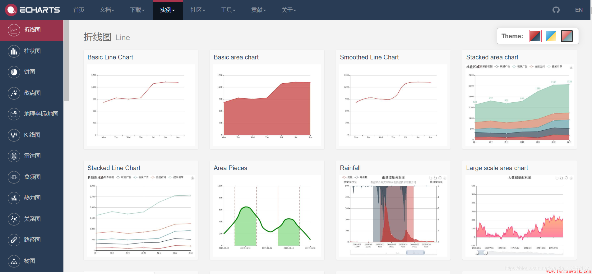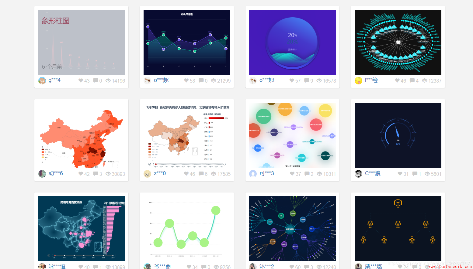官方自帶的圖例,可能在很多時(shí)候并不能滿足我們的需要,在社區(qū)這里可以找到一些基于echart的高度定制好的圖表,相當(dāng)于基于jquery開(kāi)發(fā)的插件,這里是基于echarts開(kāi)發(fā)的第三方的圖表。
