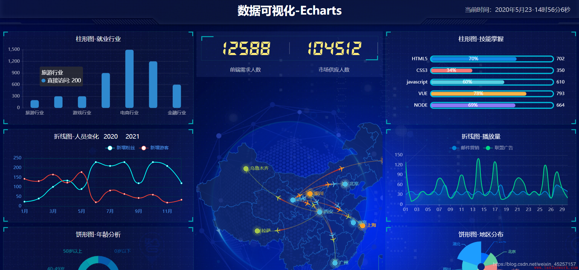 ECharts,一個(gè)使用 JavaScript 實(shí)現(xiàn)的開(kāi)源可視化庫(kù),可以流暢的運(yùn)行在 PC 和移動(dòng)設(shè)備上,兼容當(dāng)前絕大部分瀏覽器(IE8/9/10/11,Chrome,F(xiàn)irefox,Safari等),底層依賴矢量圖形庫(kù) ZRender,提供直觀,交互豐富,可高度個(gè)性化定制的數(shù)據(jù)可視化圖表。