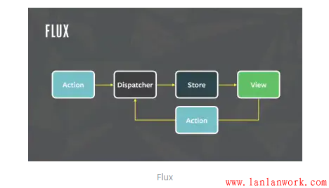 對于Flux,目前還沒怎么研究,不怎么懂,這里就先把Flux的圖放上來,有興趣或者了解的可以再分享下,這里主要說下React。