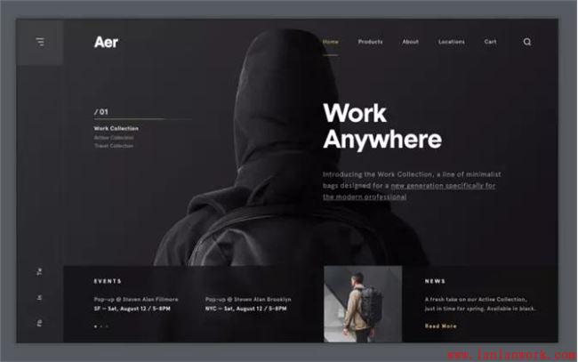 這兩個極簡主義的暗黑主題網(wǎng)站都使用了粗體字體。小心地使用單一強調(diào)色的陰影,以符合暗黑模式UI設(shè)計原則。