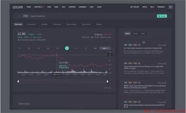 Atom Finance為復(fù)雜的外觀使用了黑色主題,并將顏色限制為三種。布局使用負空間,極簡設(shè)計。該網(wǎng)站使用微妙的陰影很好地表明不同的組件在用戶界面標高。