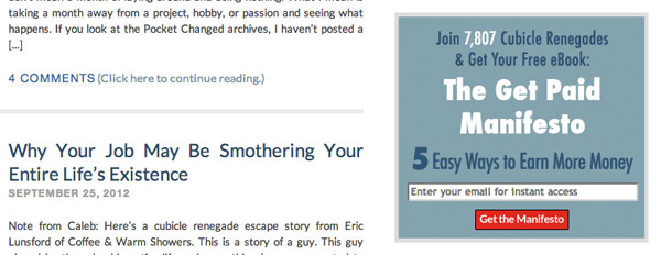Pocket Changed的訂閱表單是個(gè)不錯(cuò)的例子,他們向訪問(wèn)者展示了當(dāng)前已有多少人進(jìn)行了訂閱下載;此外,他們也非常簡(jiǎn)單直接的讓訪問(wèn)者了解到在填寫郵箱后可以得到什么。如果可以再加入一些來(lái)自真實(shí)訂閱用戶的贊許反饋,這個(gè)表單的轉(zhuǎn)化效果會(huì)更好。