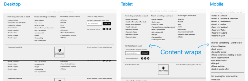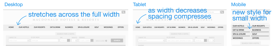 我們將使用一個真實的酒店網(wǎng)站 作為范例,來演示響應(yīng)式Web設(shè)計的流程。這個網(wǎng)站是我們在九月份剛剛為Macdonald連鎖酒店創(chuàng)建的。在整個設(shè)計開發(fā)流程中,有幾個關(guān)鍵步驟,是我們接下來要逐一展開學(xué)習(xí)的: