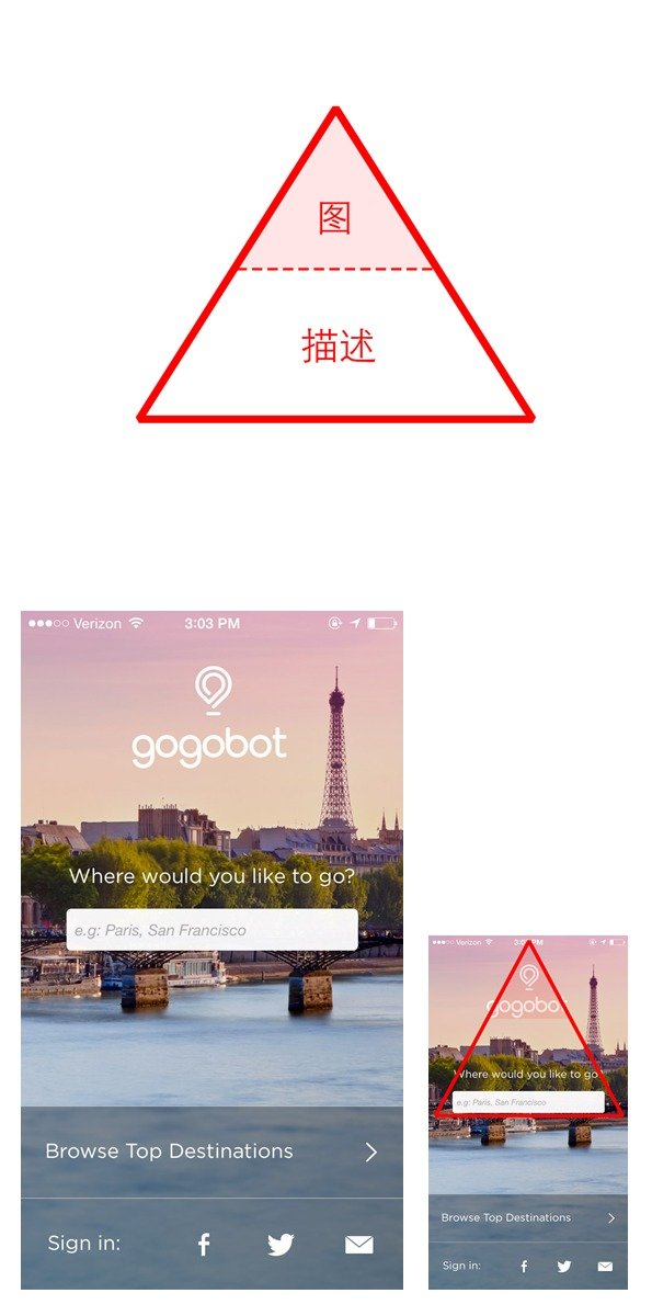 在界面中三角形構(gòu)圖大部分都是圖在上,字在下,閱讀更為舒服,有重點(diǎn)有描述。