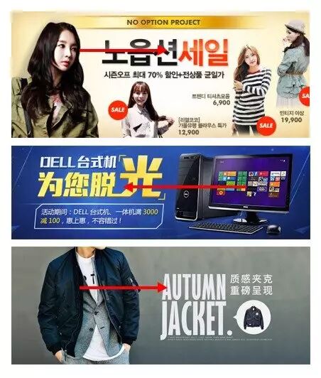 值得注意的是,要充分利用主圖的畫面的指向性。比如,主圖是人物,可將文字放置于其眼神、朝向、手勢(shì)等對(duì)應(yīng)的方向,加強(qiáng)視線引導(dǎo)。如果是產(chǎn)品圖,則可以通過產(chǎn)品的朝向來引導(dǎo)。這樣做,用戶能最快速的關(guān)注到文本信息,加強(qiáng)認(rèn)知度和購買度。