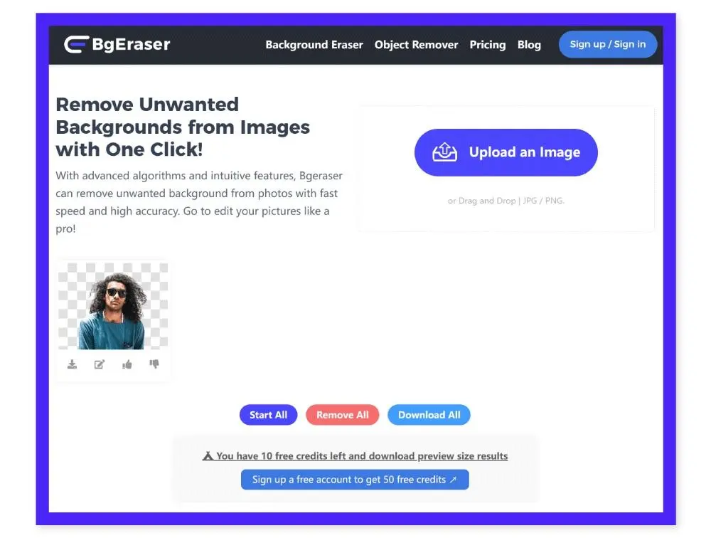 一個專注于 AI 摳圖網(wǎng)站,支持批量處理。上傳圖像后點擊 start 開始處理圖像,摳圖時間在 30s 左右。新用戶有 10 次的免費摳圖額度,注冊登錄后額度可以上升至 50 次。