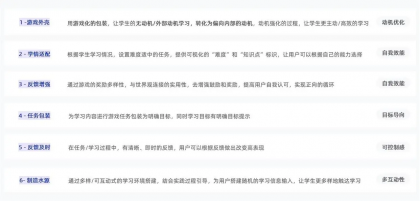 回顧上述內(nèi)容,從教育軟件層面,游戲化設計的切入點可以歸納為如下內(nèi)容。