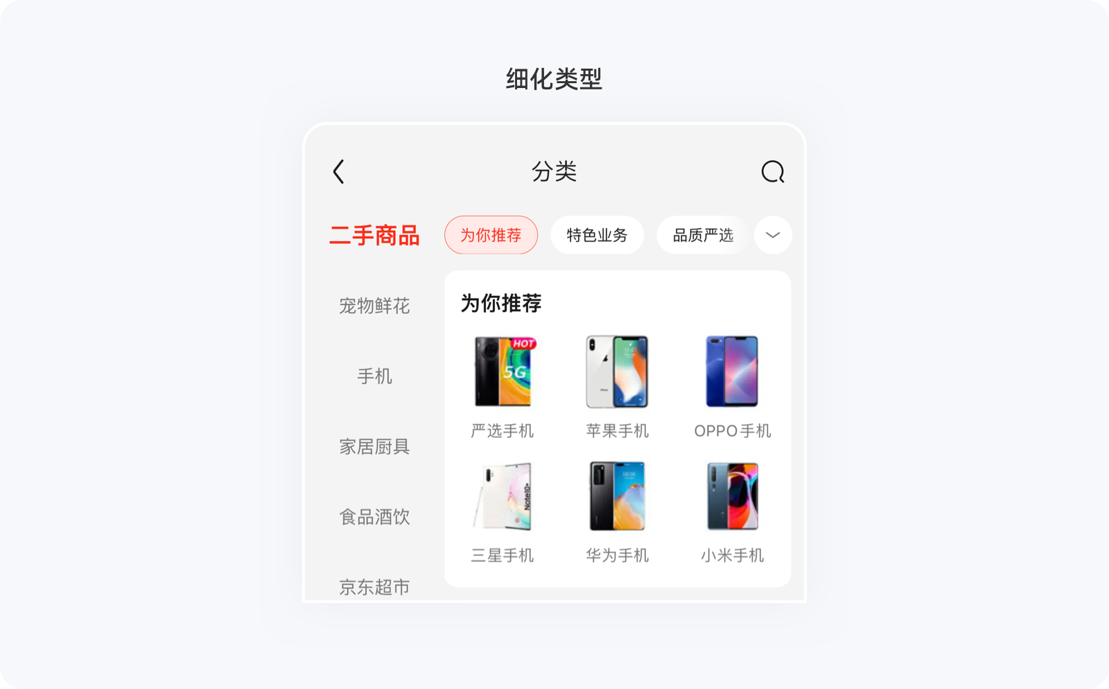 這里最為典型的例子就是電商平臺的分類,它通過一級、二級、甚至三級分類將商品所涉及到的類型合理的控制在有效范圍內,這些選項被分類/分組之后,關鍵信息得到強化,能輔助用戶快速作出決策。還有后面的二次篩選功能,幫助用戶進一步縮小范圍,選擇效率明顯會更高。當然,這不僅僅是依靠??硕桑€得結合運營需求、用戶數(shù)據(jù)等因素進行合理化分類。
