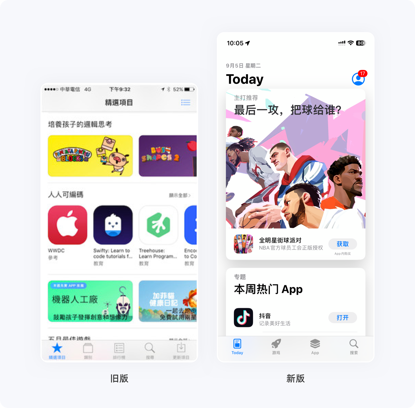 對用戶來說,選項越多就越復雜,需要的決策時間就越長,尤其是用戶在絕大多數(shù)情況下所看到的頁面都存在信息過剩的情況,這時候,產(chǎn)品需解決的不是選項夠不夠的問題,而是選項夠不夠好。當存在大量選項時,可適度減少選項的數(shù)量,不僅能降低用戶的思考時間,也提高了選項的質量。iPhone用戶應該比較清楚,蘋果始終在不遺余力的遵循??硕桑珹PP Store就是最好的例子,從改版前大量的推薦應用堆積到改版后信息量的減少,選擇目標瞬間清晰了很多,用戶體驗得到了大幅度的提升