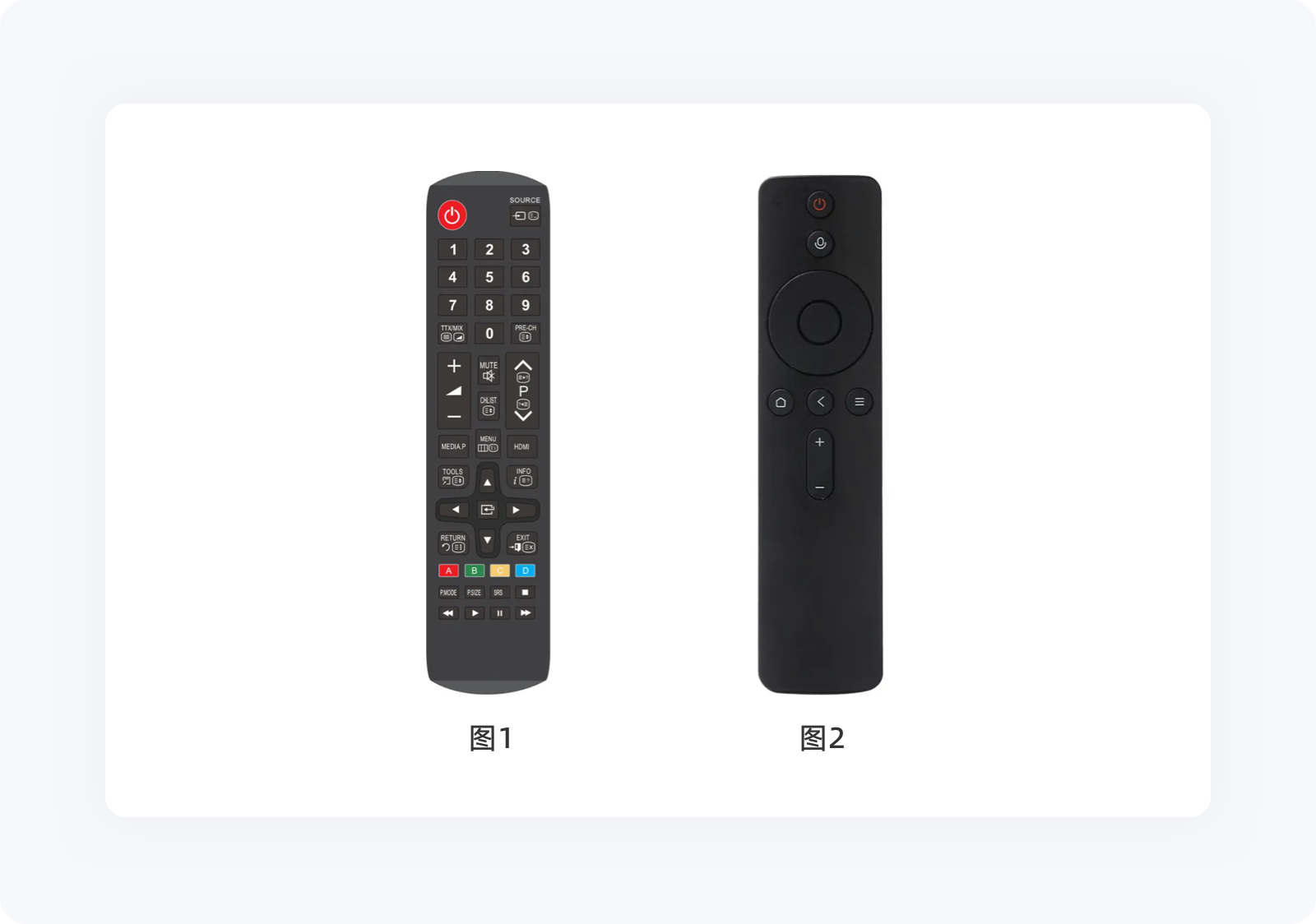 ??硕稍谖覀兩钪械氖褂秒S處可見,如下圖的兩個遙控器,你更傾向于使用哪一個?毫無疑問,圖2不管是從視覺上、還是操作上都更簡單,特別是老少用戶,簡單地教一下就能快速學會。至于圖1,有些圖標、顏色、英文,很多年輕的用戶也不清楚到底是干什么的,要想搞清楚,則需要更多的時間成本、學習成本以及試錯成本,這就是希克定律在遙控器上的作用,以減少選擇讓用戶更快決策。遙控器的這個案例雖然在交互設計四策略中也體現(xiàn)的淋漓盡致,但與希克定律并不沖突,讓用戶減少選擇的方式可以是刪除、組合,也可以是隱藏、轉移。