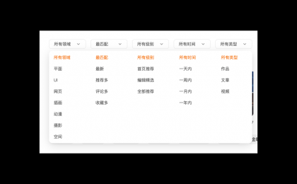 我們可以通過,將這些選擇進(jìn)行分類打包,以站酷為例子將類似功能進(jìn)行分類或者分頁面,幫助用戶梳理進(jìn)行梳理。