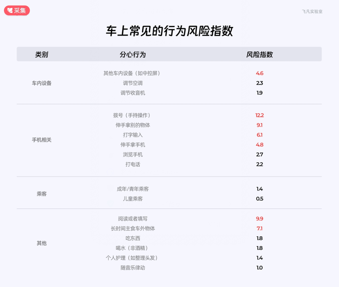 車上分心動(dòng)作的風(fēng)險(xiǎn)指數(shù)是一個(gè)評(píng)估特定行為對(duì)駕駛安全的潛在影響的指標(biāo)。這個(gè)指數(shù)可以根據(jù)多種因素來(lái)確定,包括但不限于以下幾個(gè)方面: