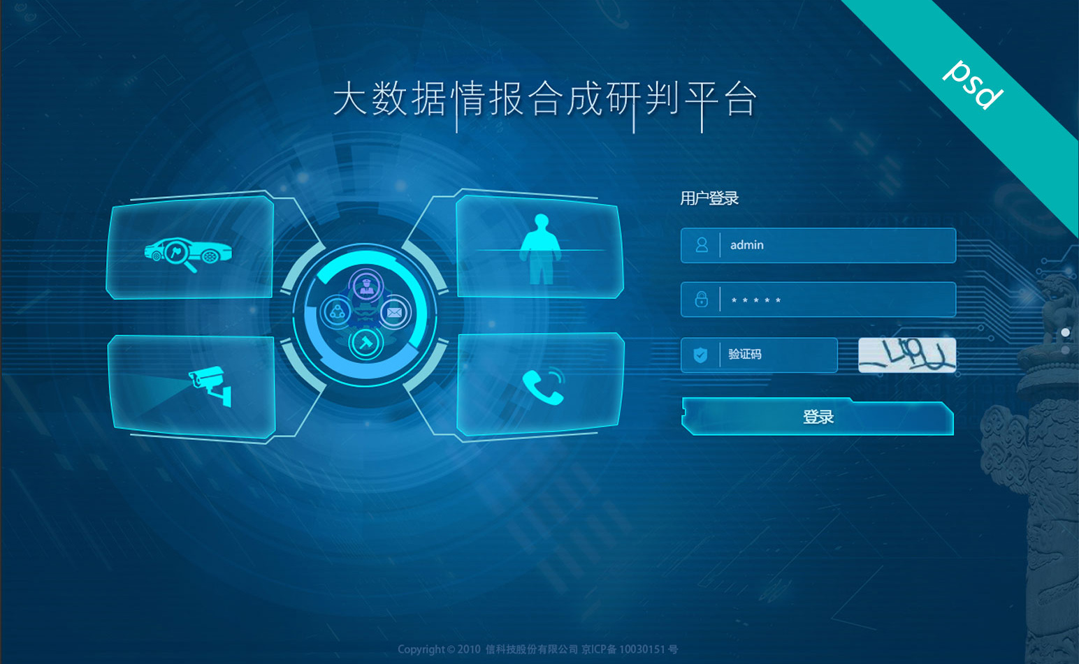 大數(shù)據(jù)平臺登錄頁psd文件