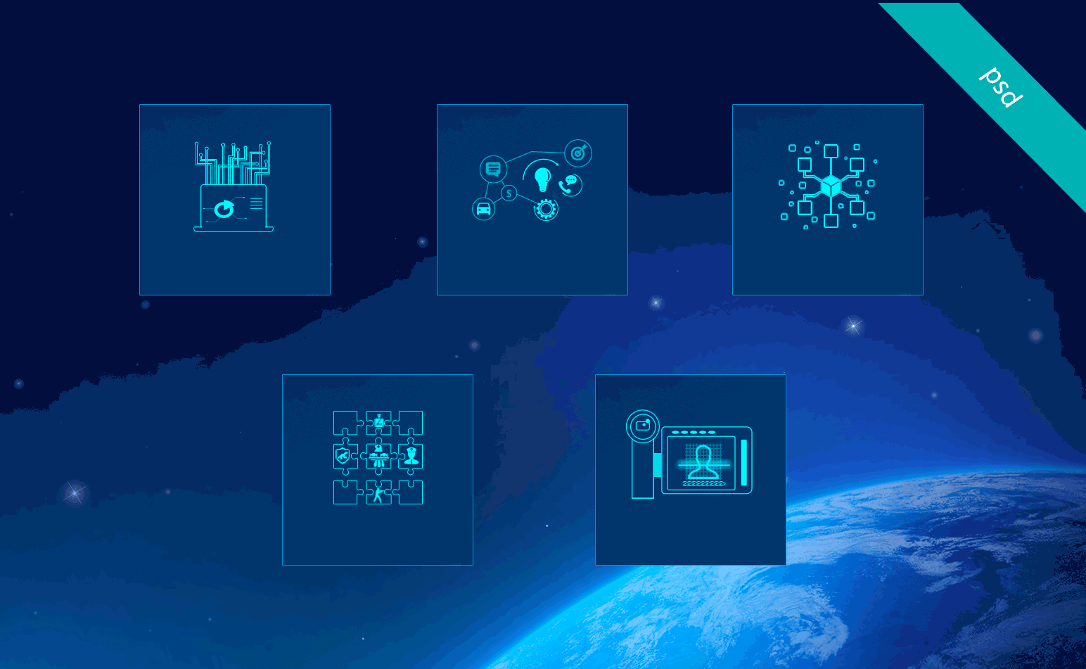科技感主頁帶層文件,可以很方便修改文字及圖標(biāo)。