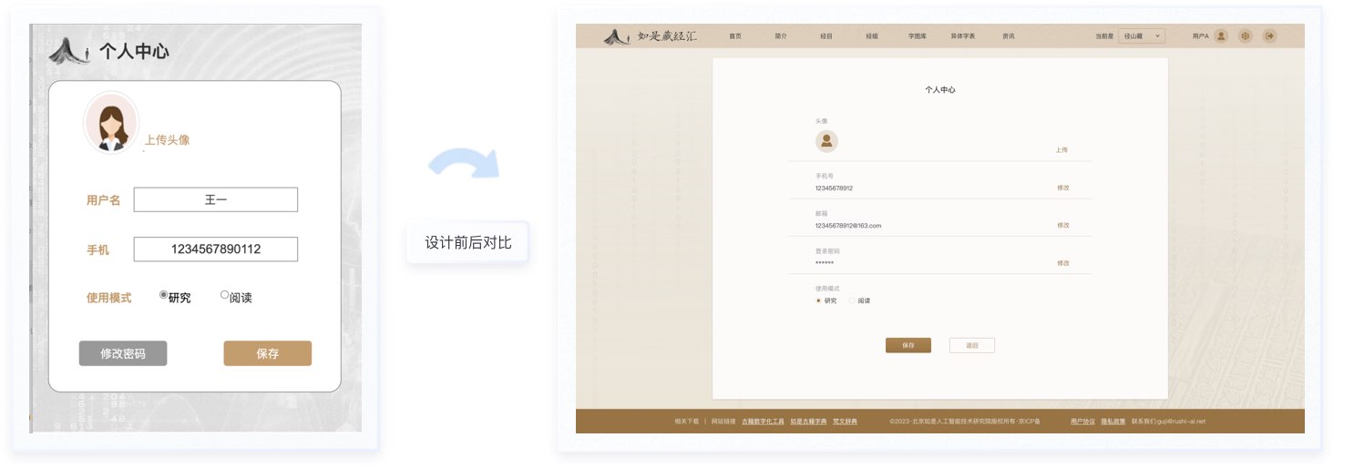 古書按列呈現(xiàn),每一列都制成為長(zhǎng)卡片,古體字和簡(jiǎn)體字一一對(duì)應(yīng),內(nèi)容和背景區(qū)分開且大量留白,列與列劃分明顯