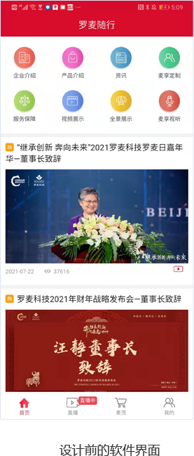 羅麥隨行app,一個與羅麥伙伴無縫鏈接的平臺,這是一個讓羅麥伙伴足不出戶,也能隨時隨地了解羅麥?zhǔn)聵I(yè)的平臺。羅麥微生活、羅麥微視頻、羅麥隨身工具包、羅麥電子書、羅麥科技微聚焦等版塊統(tǒng)統(tǒng)搬回家。這個App已上線多年未更新,客戶希望設(shè)計公司自由發(fā)揮,在現(xiàn)有功能上優(yōu)化交互和視覺,完成首頁改版。